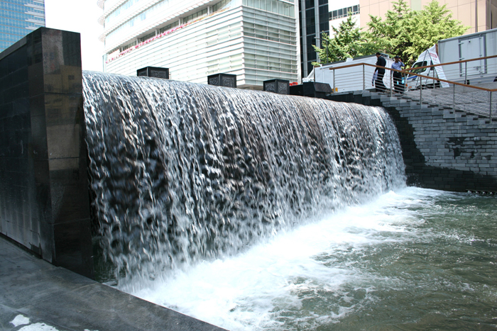 빛과 물의 만남을 통해 밤에 특히 아름다운 모습을 연출하도록 설계됐다. 분수대 아래로 하루 6만5000t씩 떨어지는 2단폭포는 보기만 해도 시원하다. 팔도상징석에서 독도를 찾는 재미도 있다. 청계천을 60m로 축소한 ‘청계 미니어처’엔 광섬유를 심어놔 밤에도 반짝반짝 빛나는 청계천 모형을 감상할 수 있다.